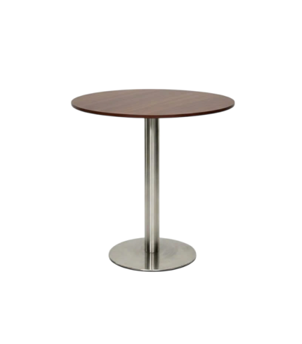 Bề mặt chân inox sáng bóng, dễ vệ sinh và luôn giữ được vẻ thẩm mỹ. Đế bàn tròn bản rộng giúp tăng độ ổn định khi sử dụng. Kết cấu chân trụ chắc chắn, hạn chế rung lắc trong quá trình sinh hoạt. Mặt bàn được làm từ gỗ cao su tự nhiên, thân thiện với môi trường.