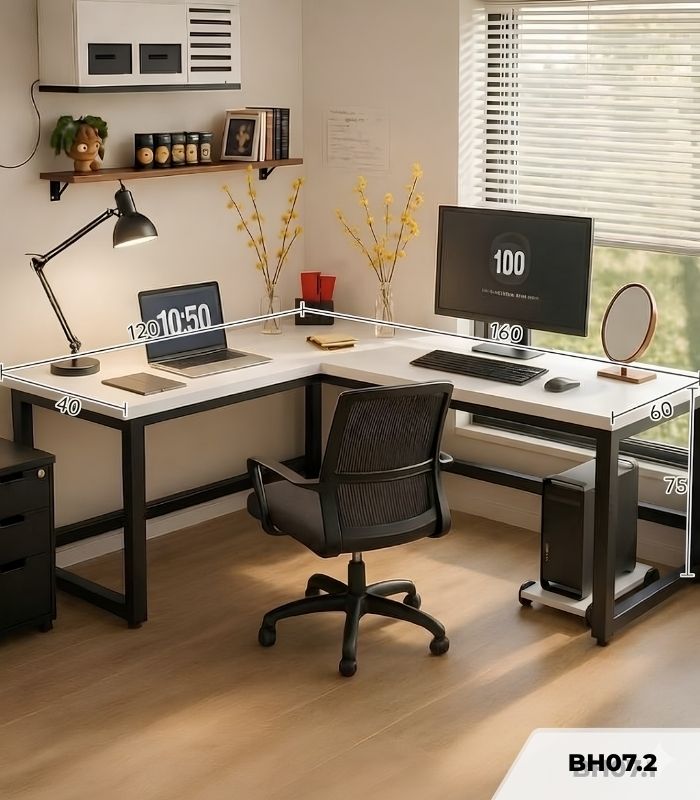 Bàn học BH07.2 120×160 mang đến không gian thao tác hoàn hảo, hỗ trợ tối ưu cho công việc và nghiên cứu. Sản phẩm giúp bạn giữ tư thế ngồi chuẩn, giảm mệt mỏi và gia tăng sự tập trung để đạt hiệu suất cao mỗi ngày.