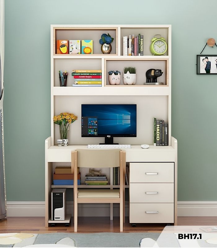Bàn học BH17.1 100×50 là mẫu bàn máy tính đa năng, cung cấp một không gian thao tác tiện dụng cho các công việc hàng ngày. Sản phẩm có kích thước phù hợp, giúp người dùng dễ dàng bố trí thiết bị làm việc, từ đó duy trì tư thế ngồi tự nhiên và hạn chế tình trạng mỏi lưng khi sử dụng máy tính liên tục.