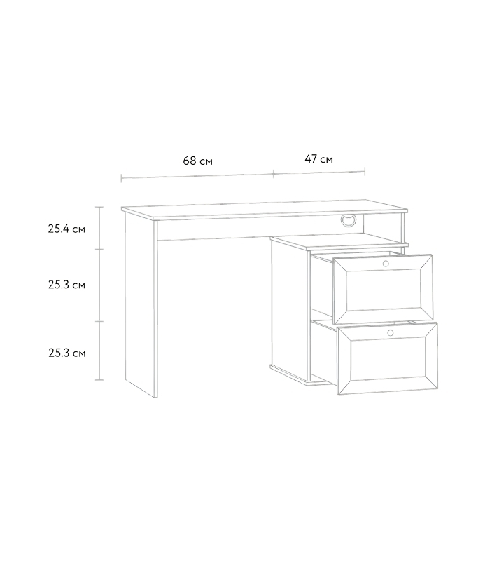 Với kích thước 115 x 50 x 76 cm, bàn đủ rộng để bố trí laptop, sách vở, đèn bàn hay vật trang trí nhỏ. Các ngăn kéo và hộc tủ tiện dụng cho phép người dùng cất giữ tài liệu, phụ kiện công việc gọn gàng mà vẫn dễ dàng lấy khi cần. Khoang mở phía trên ngăn kéo giúp tận dụng diện tích cho thiết bị hoặc vật dụng thường dùng, giữ mặt bàn luôn ngăn nắp.
