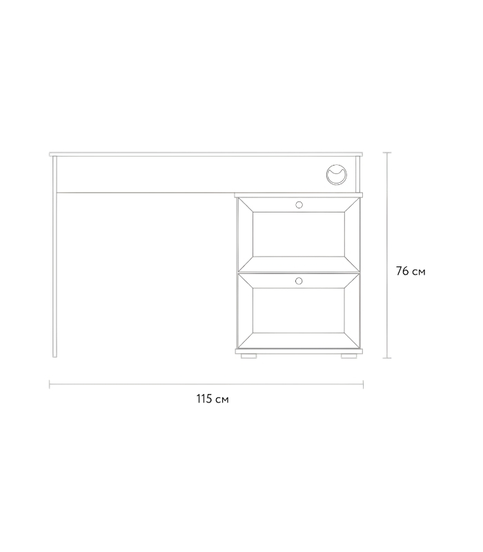 Với kích thước 115 x 50 x 76 cm, bàn đủ rộng để bố trí laptop, sách vở, đèn bàn hay vật trang trí nhỏ. Các ngăn kéo và hộc tủ tiện dụng cho phép người dùng cất giữ tài liệu, phụ kiện công việc gọn gàng mà vẫn dễ dàng lấy khi cần. Khoang mở phía trên ngăn kéo giúp tận dụng diện tích cho thiết bị hoặc vật dụng thường dùng, giữ mặt bàn luôn ngăn nắp.