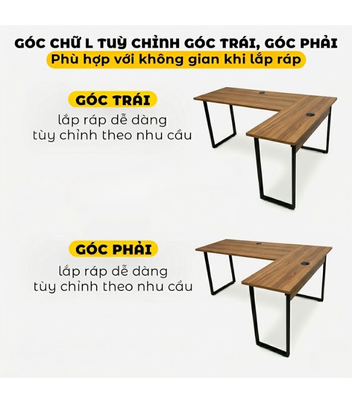 Sản phẩm có kích thước 140cm x 100cm x 75cm. Thiết kế chữ L, khung thép chữ U mặt gỗ phù hợp để học tập, xem phim… Mặt gỗ MDF chắc chắn, độ bền tốt, tạo thẩm mỹ cho không gian.
