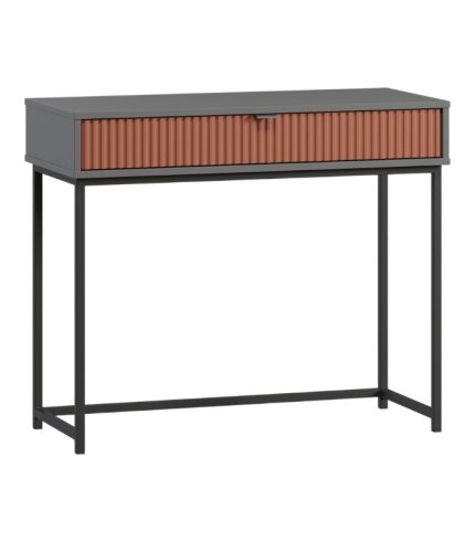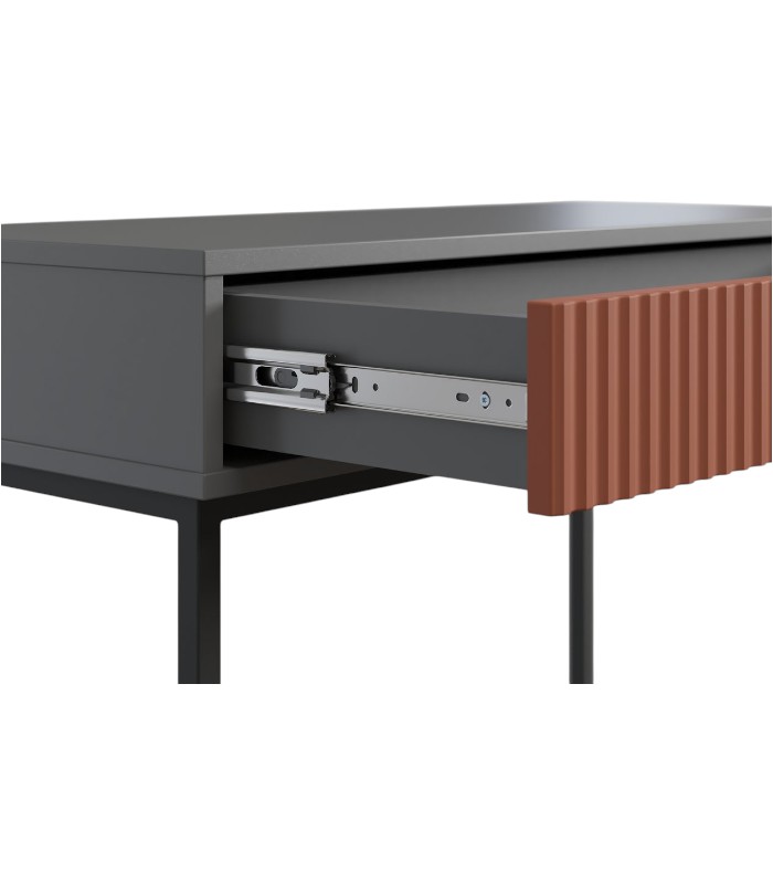 Ngăn kéo rộng rãi giúp bạn lưu trữ giấy tờ và đồ dùng văn phòng một cách gọn gàng, giữ cho mặt bàn luôn sạch sẽ và ngăn nắp. Màu xám chì chủ đạo kết hợp cùng cánh lam nâu đỏ đất nung mang đến vẻ ấm áp, nhẹ nhàng nhưng vẫn hiện đại, tạo cảm giác dễ chịu cho không gian làm việc.