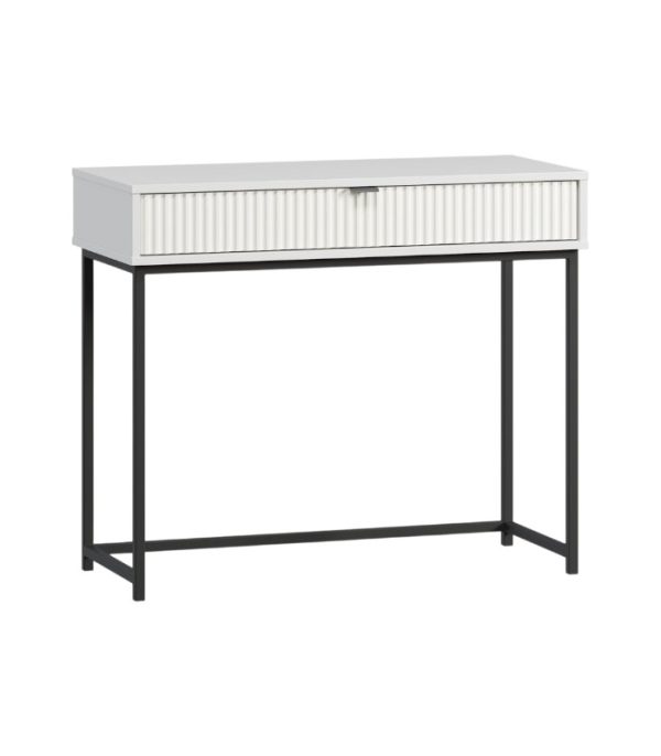 Bàn được chế tác từ gỗ MDF dày 17mm phủ Melamine chống ẩm, bề mặt mịn màng, dễ vệ sinh và chống trầy xước nhẹ. Chân sắt sơn tĩnh điện vững chãi, nâng đỡ tổng thể và mang đến nét thanh thoát, hiện đại.