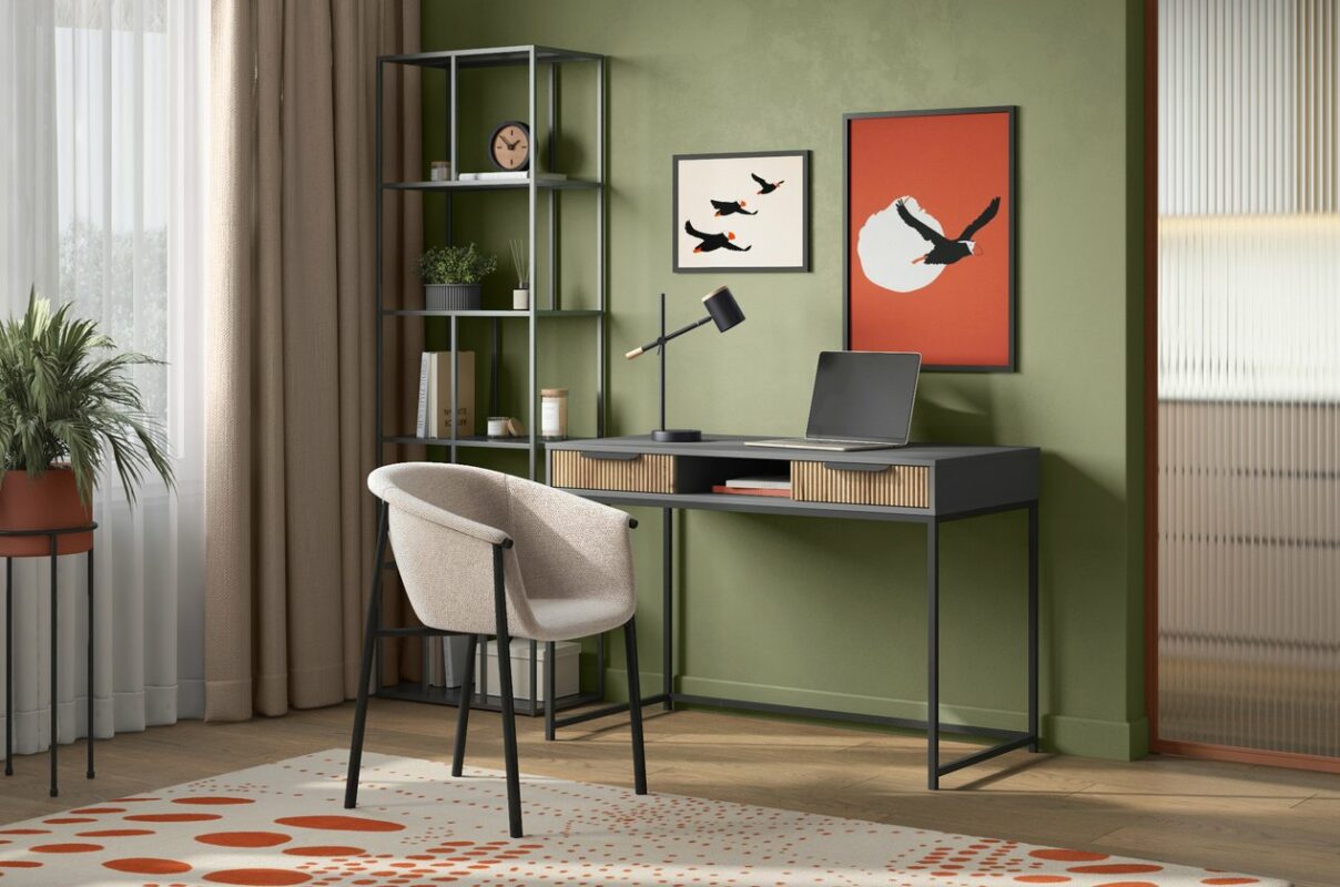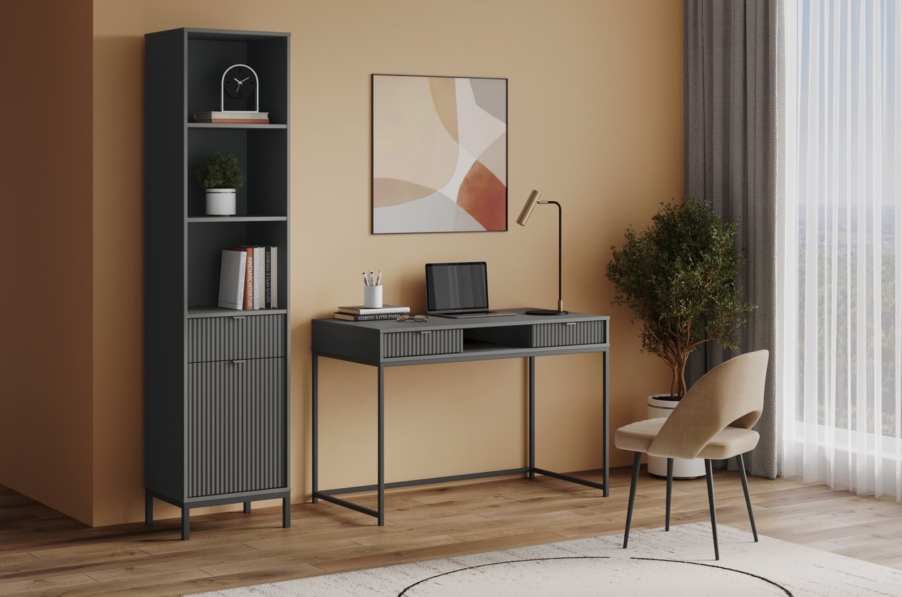 Thuộc Bộ sưu tập Travis, Bàn Làm Việc Travis Xám Chì – 1.1 không chỉ là món nội thất tiện dụng mà còn là chi tiết trang trí tinh tế, nơi từng đường nét được chăm chút, tạo cảm hứng làm việc và thể hiện gu thẩm mỹ nhẹ nhàng, thanh lịch cho không gian sống.