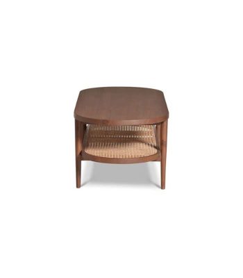 Bàn trà mây oval mặt gỗ Walnut Nhạt