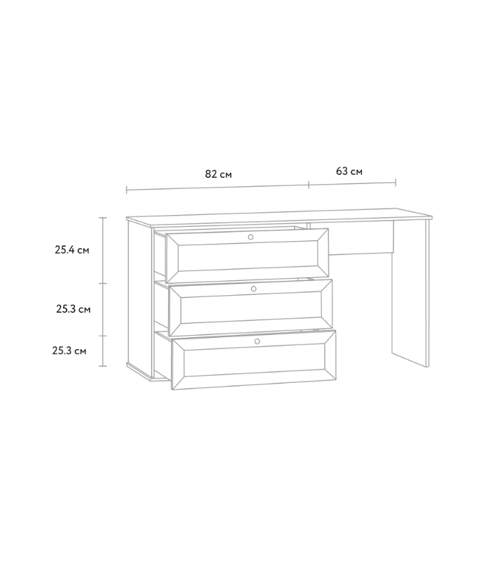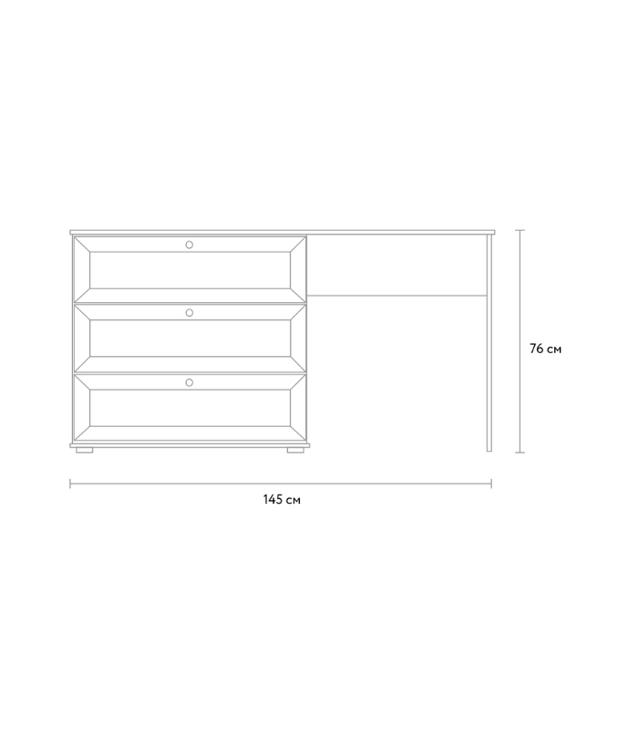 Thiết kế của bàn chú trọng đến công năng và sự tiện lợi. Với kích thước 145 x 46 x 76 cm, mặt bàn đủ rộng để bố trí gương, mỹ phẩm, nước hoa hay phụ kiện cá nhân. Phần hộc tủ và ngăn kéo được bố trí khoa học, giúp người dùng dễ dàng sắp xếp đồ trang điểm gọn gàng mà không làm mất tính thẩm mỹ. Các chi tiết tay nắm nhỏ bằng kim loại màu vàng giúp tổng thể thêm điểm nhấn tinh tế và sang trọng.