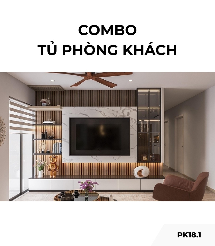 Sự liên kết giữa các hạng mục trong PK18.1 được xử lý mượt mà, từ tủ tivi, mảng ốp đến tủ kính, tạo nên một tổng thể liền mạch và có chủ đích. Mỗi chi tiết đều có vai trò riêng nhưng vẫn hòa hợp trong một bố cục chung. PK18.1 không chỉ là bộ tủ phòng khách, mà còn là giải pháp hoàn thiện không gian sống – nơi công năng, thẩm mỹ và ánh sáng được kết hợp hài hòa, giúp phòng khách trở nên ấn tượng và có chiều sâu hơn.
