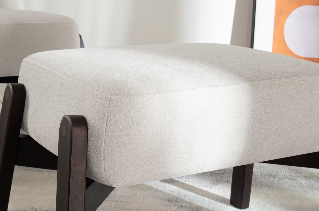 Ghế Đôn Chân Gỗ Bọc Vải Hardy Bucle White