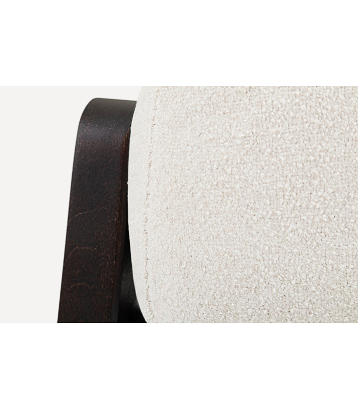 Bouclé White mang lại cảm giác sang trọng nhưng vẫn ấm áp nhờ các sợi vải bông nhẹ. Chân gỗ tự nhiên chắc chắn, chống lắc và nâng đỡ cơ thể ổn định.