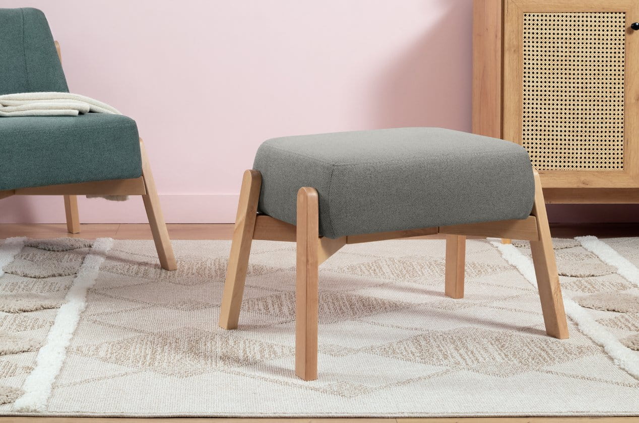 Ghế Đôn Chân Gỗ Bọc Vải Hardy Soft Grey