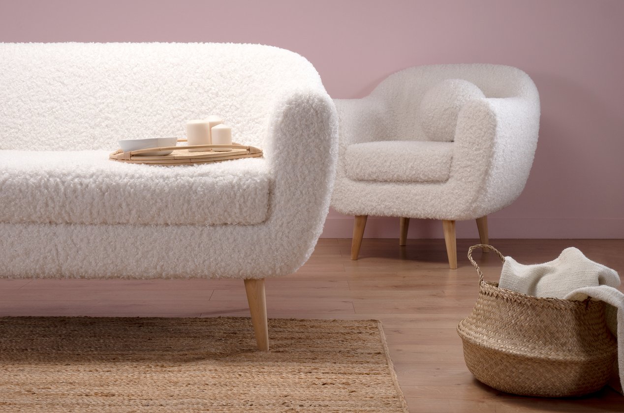 Gam màu Cozy Milk nhẹ nhàng, tinh khiết như ánh sữa ấm, tạo nên sự thanh thoát và tinh tế, giúp căn phòng trở nên sáng sủa và rộng rãi hơn. Bề mặt bọc vải lông cừu dày dặn, mềm mại như mây, không chỉ nâng niu cảm giác chạm mà còn mang đến sự ấm áp, thích hợp cho cả những ngày đông se lạnh.