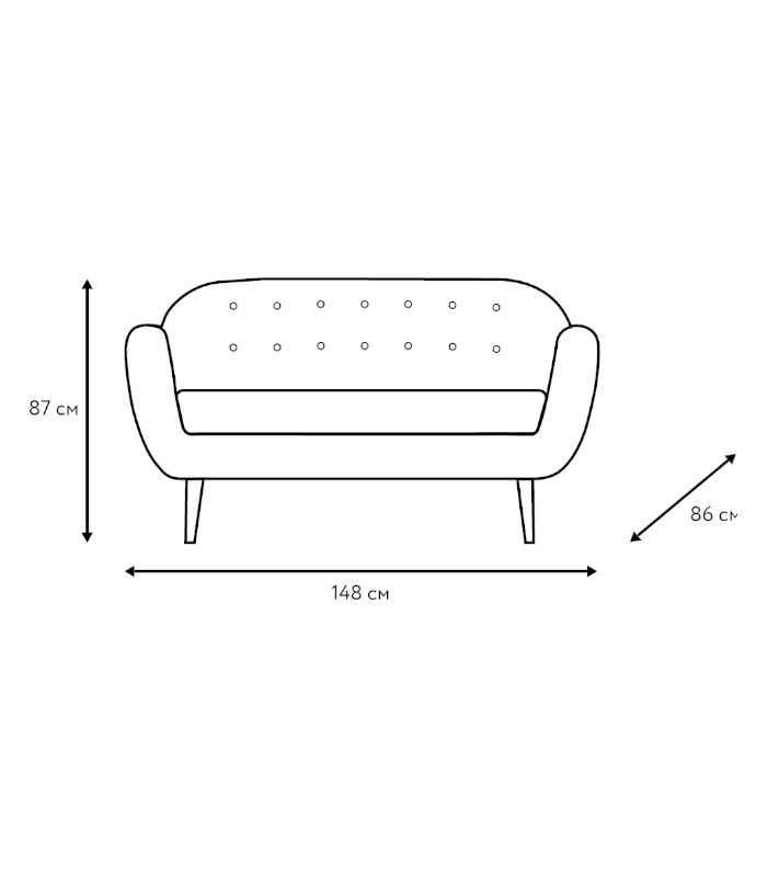 Với kích thước 148 × 86 × 87 cm, sofa đôi dễ dàng hòa hợp với nhiều không gian khác nhau: từ phòng khách nhỏ, phòng ngủ ấm cúng cho đến góc thư giãn yên tĩnh. Chân gỗ sáng màu không chỉ giúp nâng đỡ chắc chắn mà còn tạo điểm nhấn thanh thoát, tinh tế cho tổng thể thiết kế.