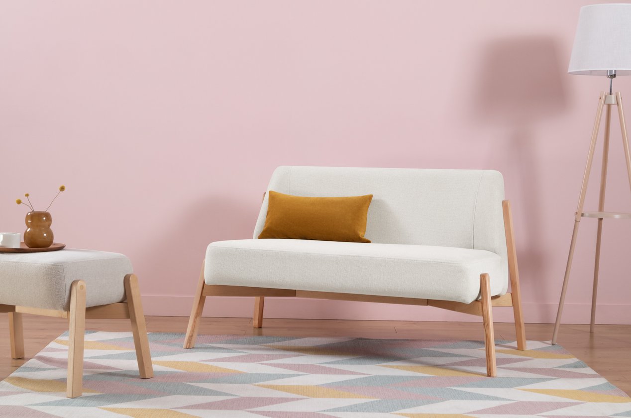 Ghế Sofa Đôi Chân Gỗ Bọc Vải Hardy Soft Milk