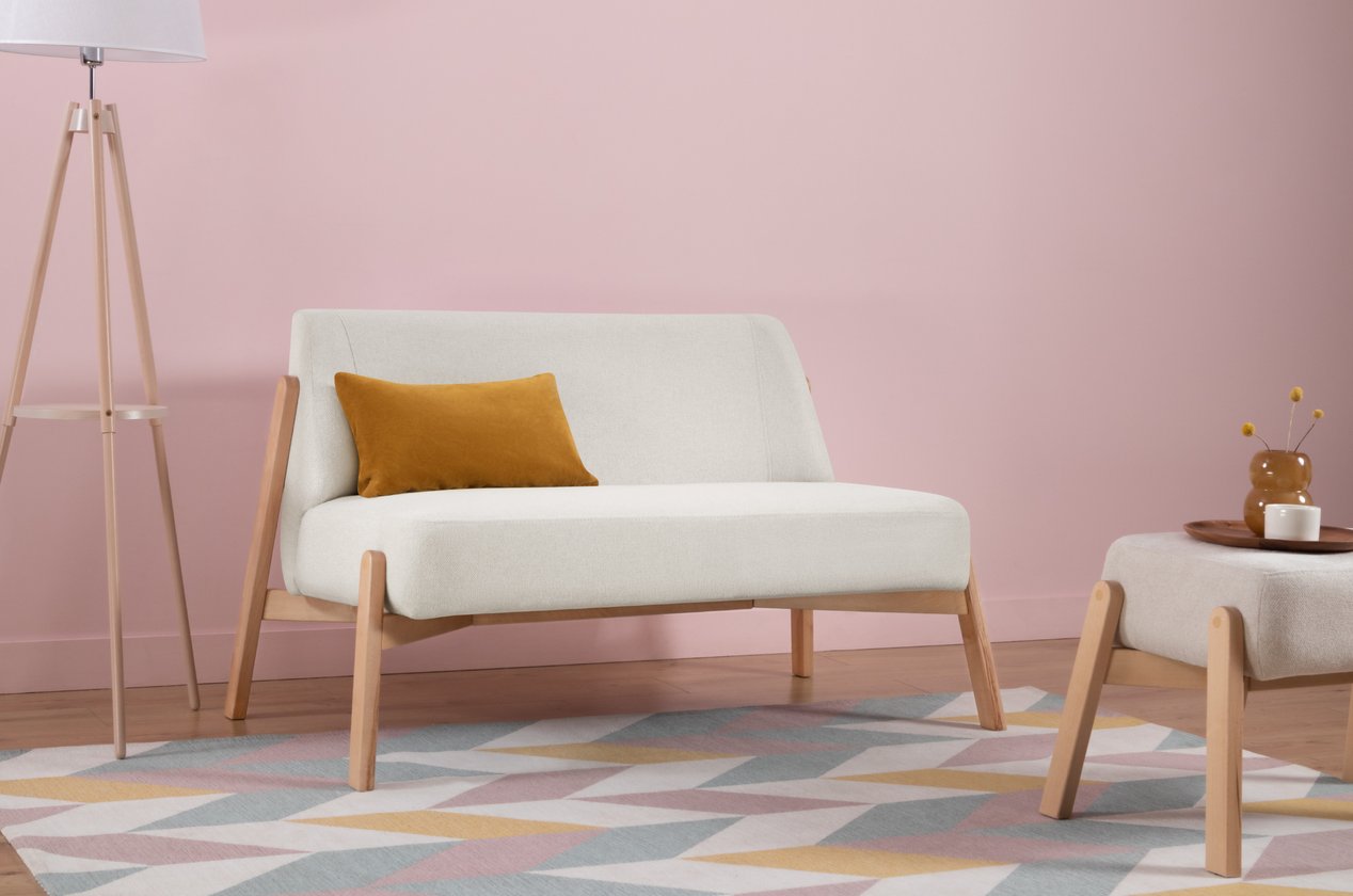 Ghế Sofa Đôi Chân Gỗ Bọc Vải Hardy Soft Milk
