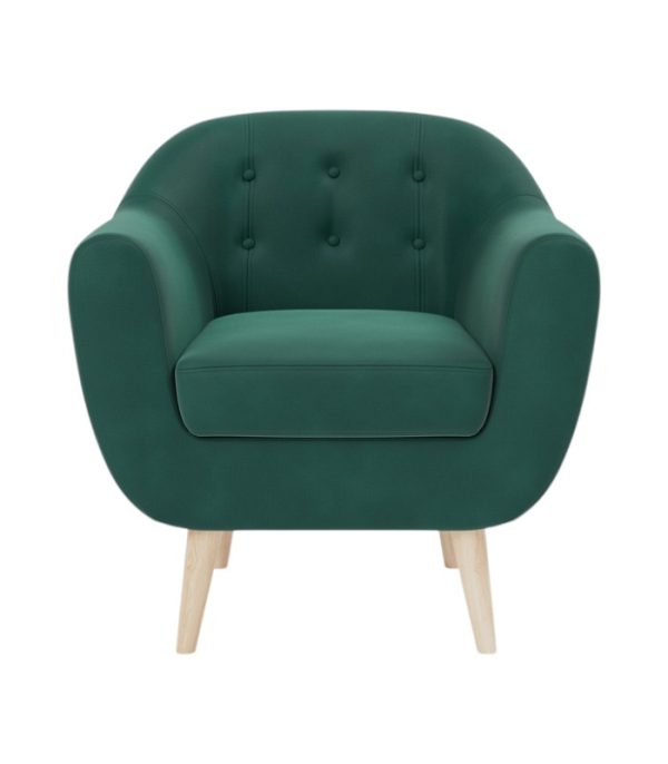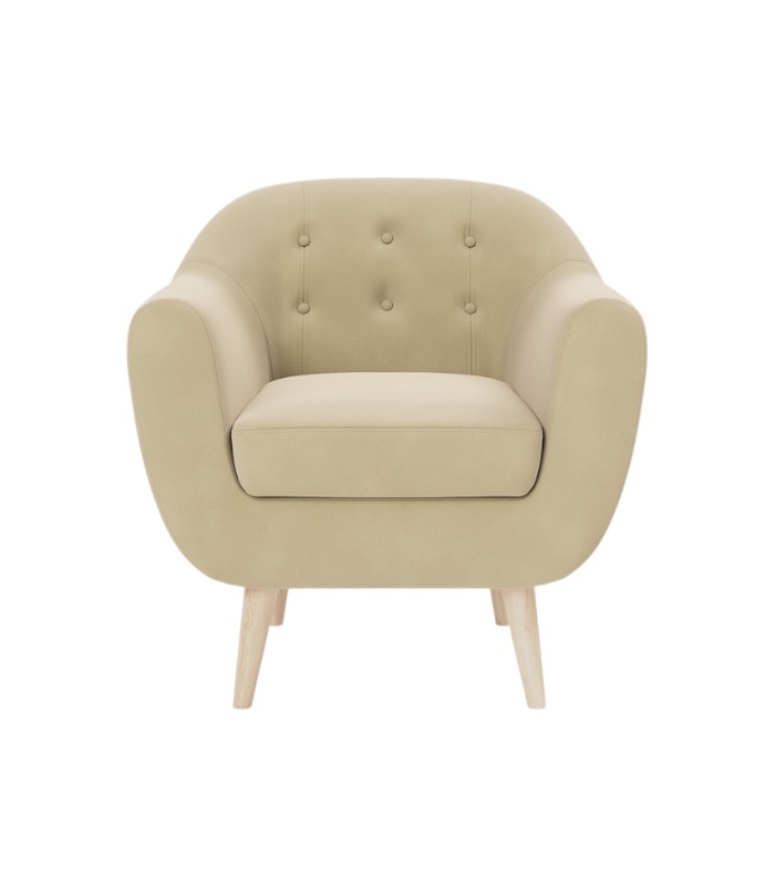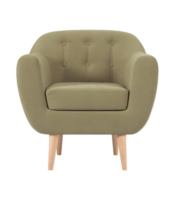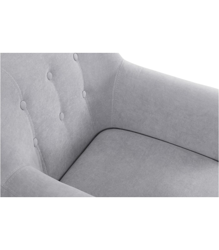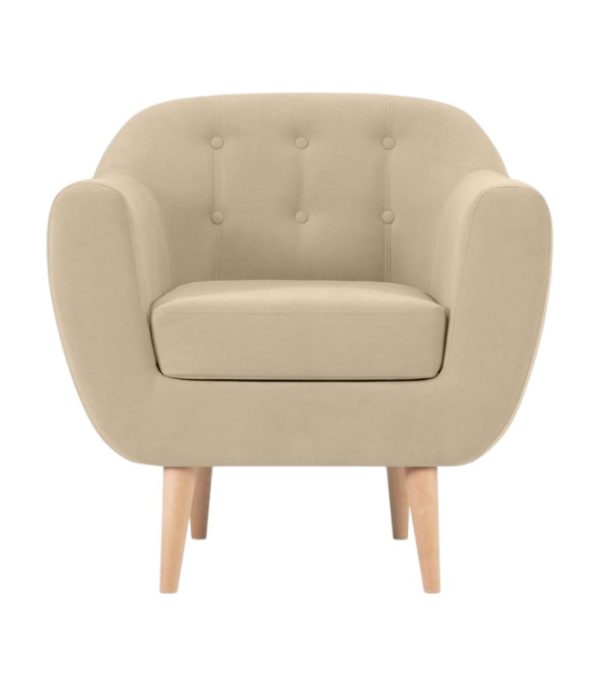 Thiết kế ghế nổi bật với phom dáng bo tròn mềm mại, phần lưng tựa ôm nhẹ cơ thể, kết hợp các nút nhấn tinh tế tạo điểm nhấn vừa đủ, gợi cảm giác cổ điển pha nét hiện đại. Kích thước 84 x 81 x 87 cm được tính toán hài hòa, phù hợp đặt tại phòng khách nhỏ, góc đọc sách, phòng ngủ hay khu vực thư giãn riêng tư.
