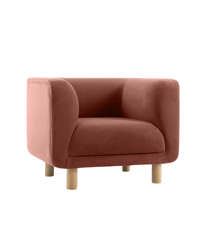 Kích thước 93 × 79 × 74 cm rất phù hợp cho những không gian vừa và nhỏ như phòng khách, phòng ngủ hoặc góc đọc sách. Form dáng nhỏ gọn nhưng liền lạc giúp sản phẩm giữ form đẹp và không gây nặng nề. Chân gỗ sáng màu tạo điểm nhấn tự nhiên, cân bằng với sắc Terra ấm áp. Kết cấu chắc chắn giúp ghế ổn định, an toàn khi sử dụng.