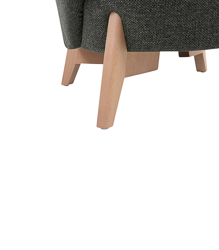 Phần chân gỗ sáng màu tạo độ cân bằng hài hòa giữa sắc tối của vải và tổng thể căn phòng. Cấu trúc chắc chắn hỗ trợ trọng lượng tốt, phù hợp sử dụng hằng ngày.