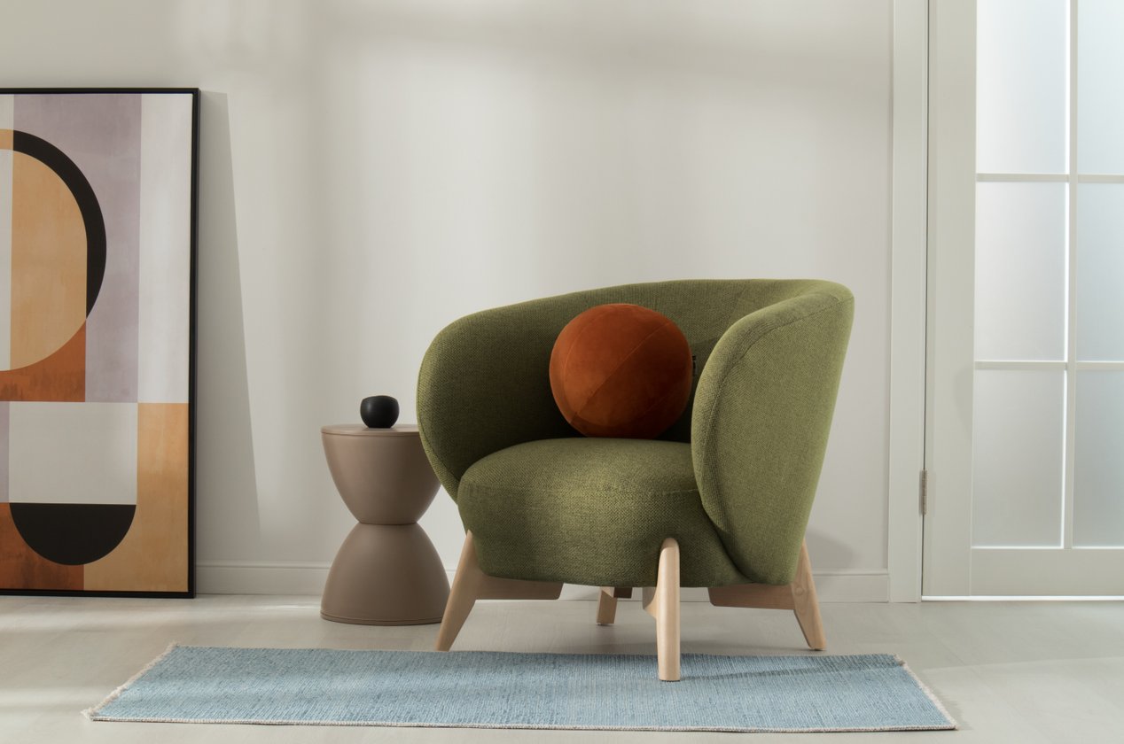 Tilar Bentory Olive mang sắc xanh ô liu trầm, đem lại cảm giác thư giãn và tự nhiên cho không gian sống. Form bo cong liền lạc giúp ghế phù hợp từ phòng khách đến phòng ngủ.