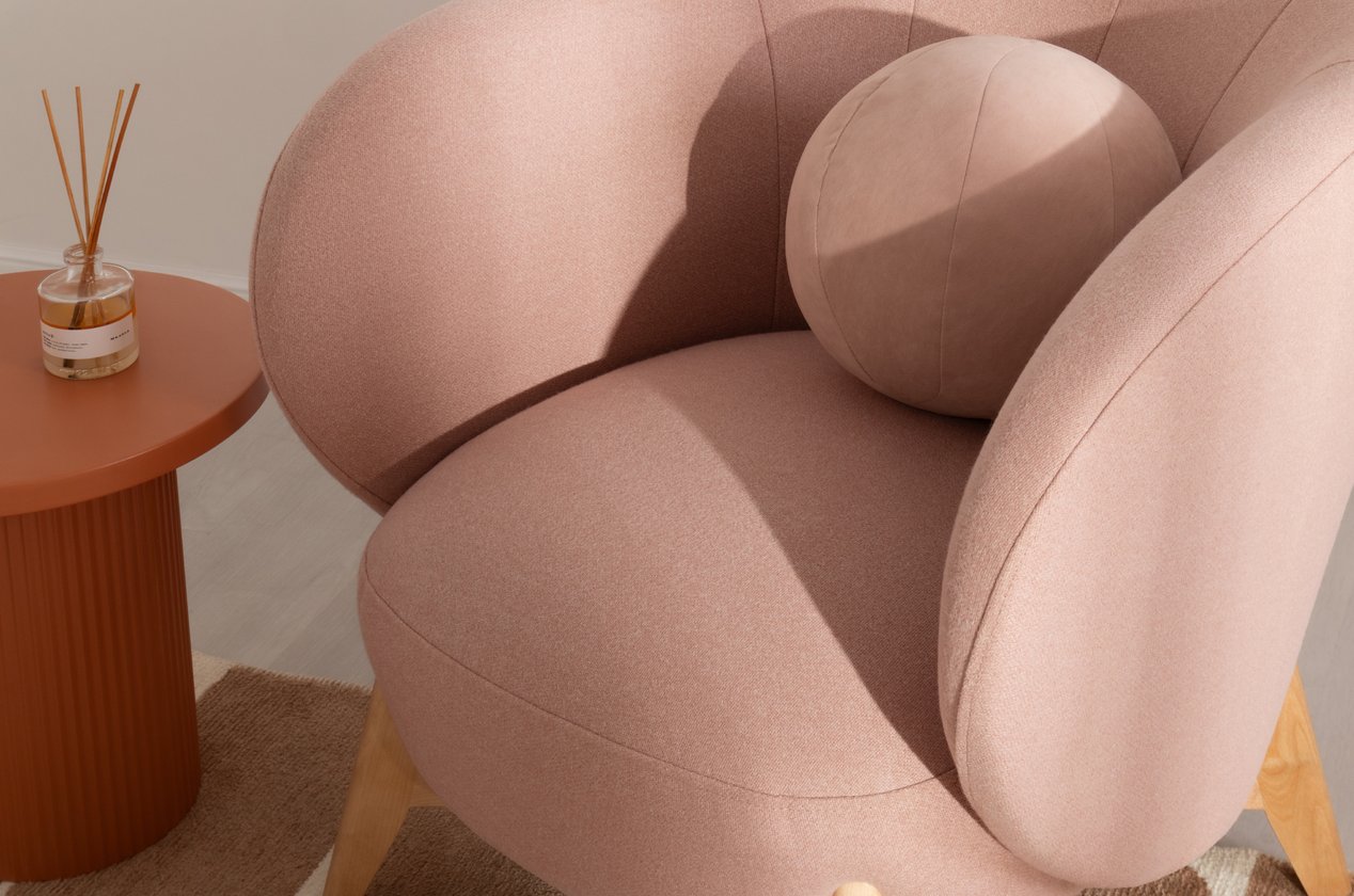 Ghế Sofa Đơn Bọc Vải Tilar Winter Clay mang sắc Clay trầm ấm pha chút nâu đất, rất phù hợp với những không gian cần sự yên bình và cân bằng. Thiết kế cong mềm mại giúp chiếc ghế vừa hiện đại vừa thân thiện thị giác.