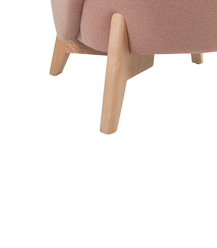 Chân gỗ sáng tương phản nhẹ với sắc Clay, đem lại tổng thể hài hòa mà không bị tối. Dáng ghế ôm cơ thể giúp ngồi lâu vẫn thoải mái.
