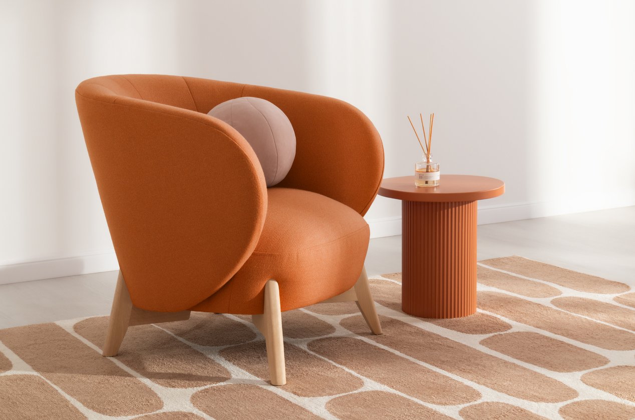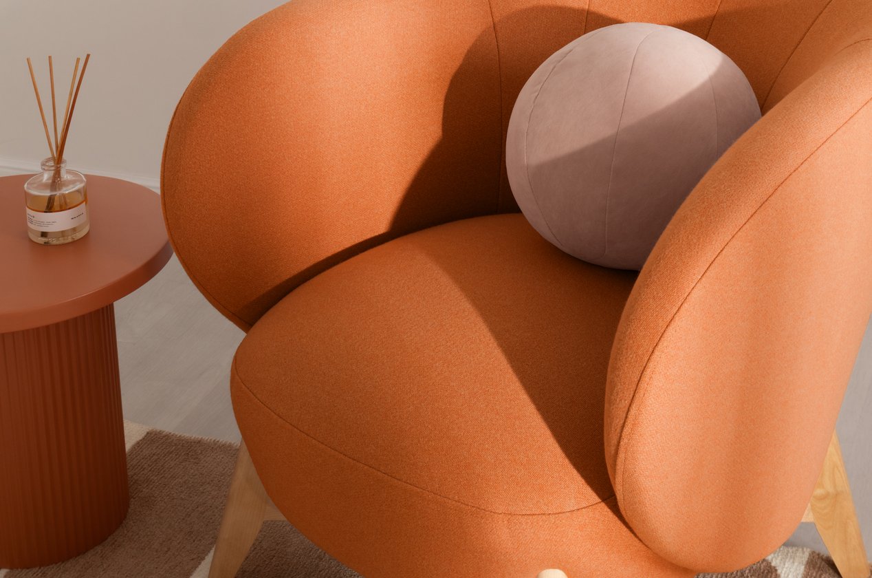 Ghế Sofa Đơn Bọc Vải Tilar Winter Orange nổi bật với gam cam đất nổi bật nhưng vẫn rất sang nhờ sắc độ trầm ấm của dòng Winter. Đây là màu sắc mang lại năng lượng, sự ấm cúng và tạo điểm nhấn tuyệt vời trong căn hộ.