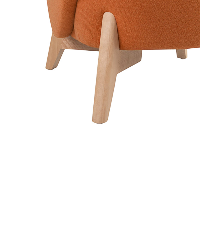 Chân gỗ sáng góp phần cân bằng sắc cam, tạo nên sự hài hòa và hiện đại. Đệm êm và vải mềm mang lại sự thoải mái khi sử dụng lâu dài.