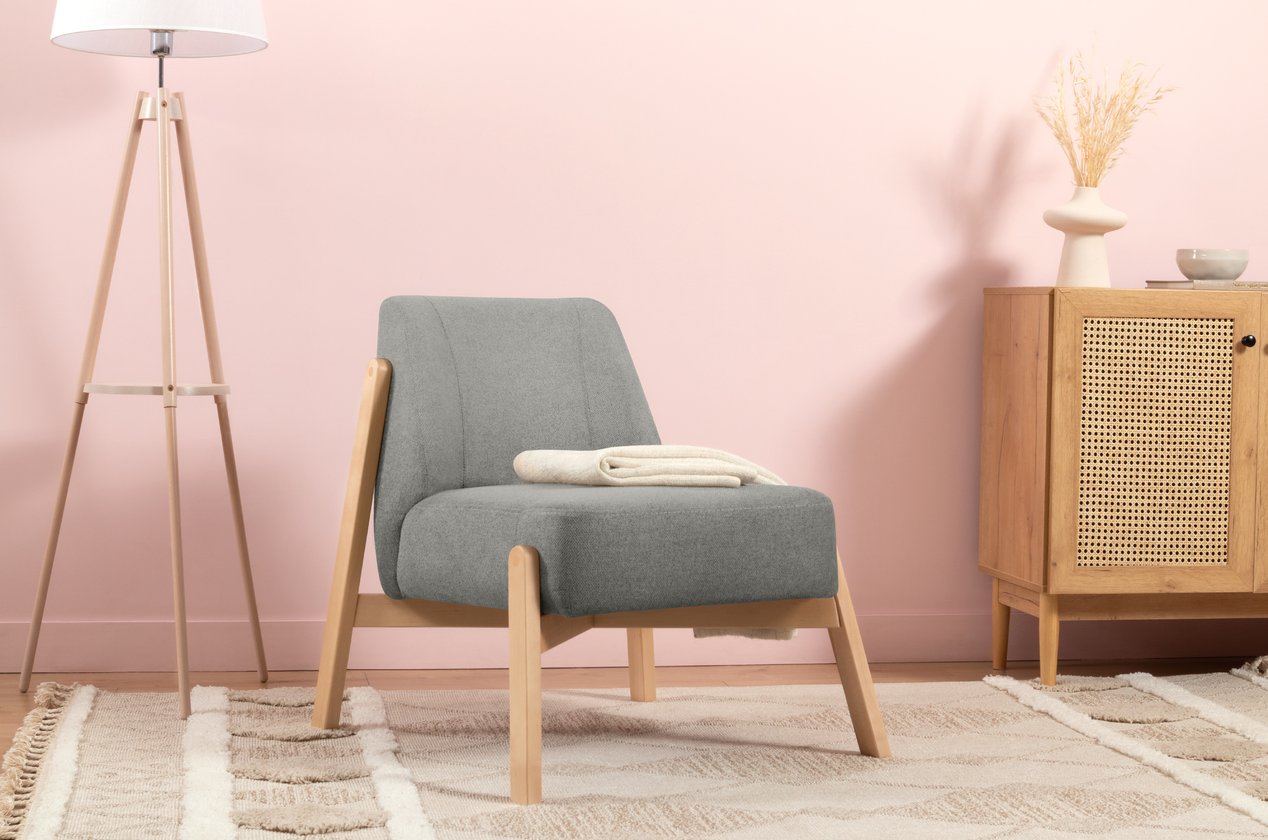 Ghế Sofa Đơn Chân Gỗ Bọc Vải Hardy Soft Grey mang tông xám trung tính hiện đại, phù hợp với mọi phong cách nội thất. Kiểu dáng Hardy mềm mại, gọn gàng giúp ghế dễ dàng bố trí trong phòng khách nhỏ, studio hoặc phòng ngủ.