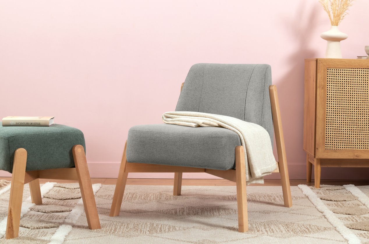 Bạn có thể đặt ghế cạnh bàn trà sáng màu, thảm dệt be hoặc ánh đèn vàng để tăng cảm giác ấm cúng. Bộ sưu tập Hardy còn có đôn cùng màu Grey giúp bạn hoàn thiện góc thư giãn.
