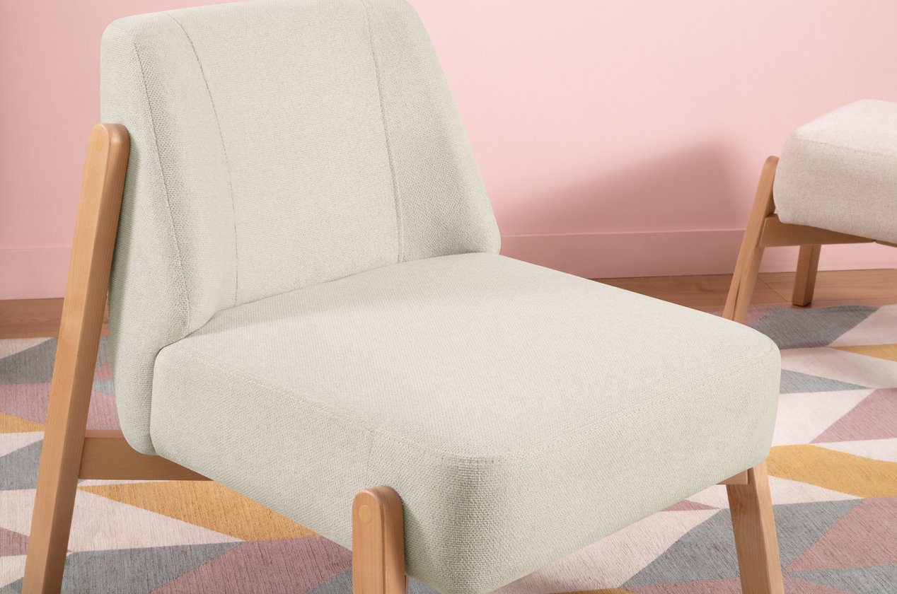 Bạn có thể phối ghế cùng thảm lông trắng, bàn cà phê chân gỗ hoặc đèn sàn tone pastel để tạo góc thư giãn nhẹ nhàng. Trong bộ sưu tập Hardy, sản phẩm sẽ đẹp hơn khi đi kèm đôn cùng màu hoặc sofa đôi Milk.