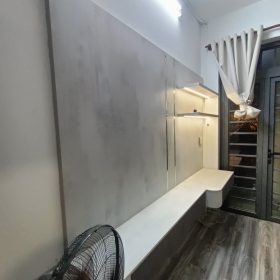 Sofa lắp vào không gian nhìn xinh dữ luôn á vừa vặn với phòng khách nhà tui, không bị thô hay chiếm diện tích nhiều quá đâu, nó dài gần 2m á