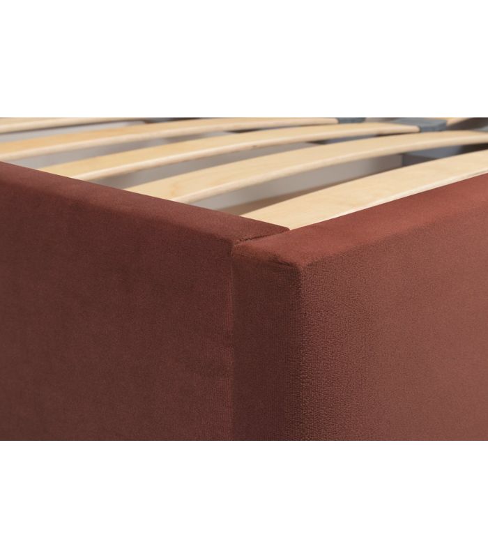 Khung giường chắc chắn, giữ form ổn định. Đầu giường mềm, cao 113 cm, hỗ trợ tốt khi tựa lưng. Chất liệu nhung màu Nâu đỏ lên màu đẹp, không xù, ít bám bụi, phù hợp cho cả phòng ngủ gia đình hoặc phòng master.