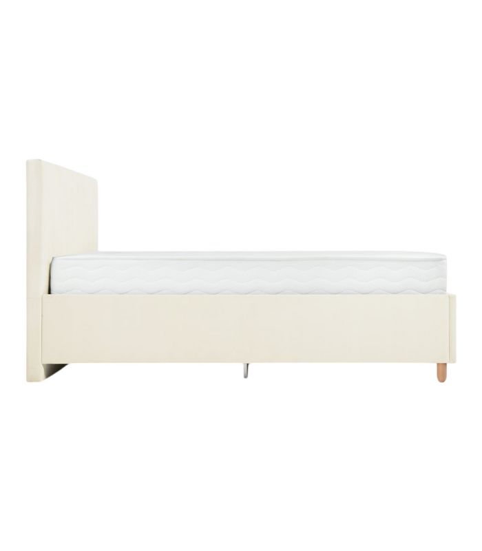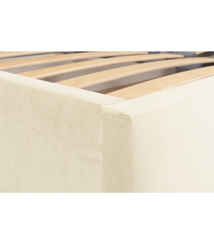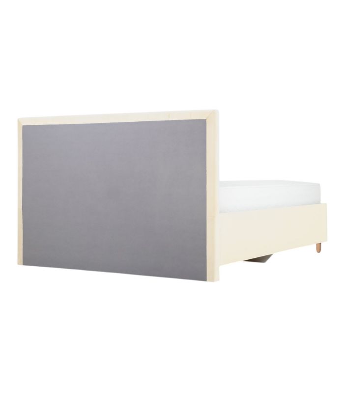 Khung giường ổn định, cấu trúc bền theo thời gian. Đầu giường cao 113 cm, bo mềm, tạo sự thoải mái khi ngồi tựa. Chất liệu nhung trắng dày, mịn, hạn chế xù lông, dễ vệ sinh nếu biết cách sử dụng khăn ẩm hoặc dung dịch làm sạch nhẹ.