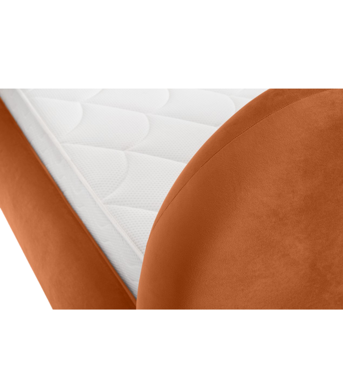 Nhung mịn cao cấp, ít bám bụi và dễ vệ sinh. Sự kết hợp giữa màu nâu đất tinh tế và chất liệu nhung mềm mại tạo điểm nhấn sang trọng và tinh tế. Không gian trở nên thanh thoát, ấm áp và dễ chịu. Khung giường chắc chắn giữ form dáng bo tròn đặc trưng, mang lại sự ổn định khi sử dụng. Thiết kế vừa nhẹ nhàng vừa sang trọng, phù hợp với phong cách tinh tế và ấm áp. Khoang chứa tiện lợi giúp phòng ngủ luôn gọn gàng, ngăn nắp. Màu Terra tạo bầu không khí dễ chịu, gần gũi và thư giãn.