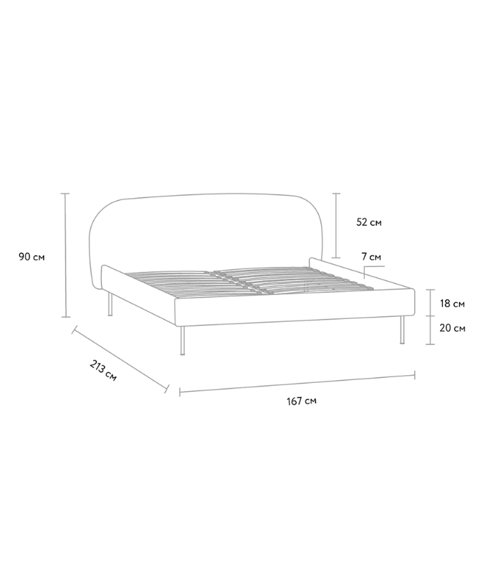 Với kích thước 167 x 213 x 90 cm, giường phù hợp cho nệm 1m4x2m và nhiều loại không gian sống. Chân giường chắc chắn, giúp tổng thể vững chãi và dễ vệ sinh.