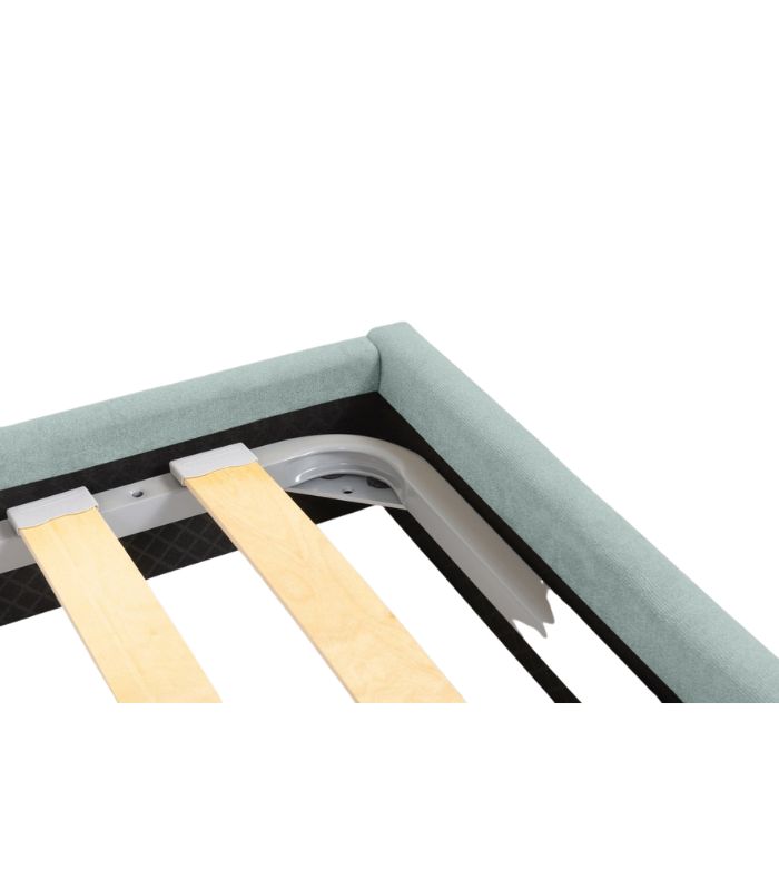 Thân giường được gia công từ MDF 17mm kết hợp các lớp ván kỹ thuật cao cấp. Chân gỗ ghép ngón giúp tăng độ bền, đồng thời thân thiện môi trường nhờ giảm lãng phí tài nguyên gỗ.