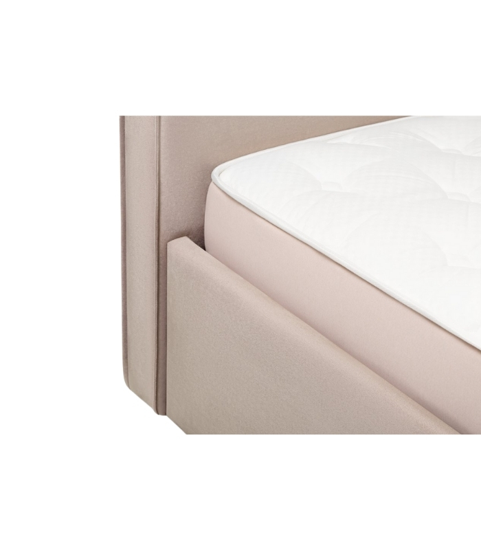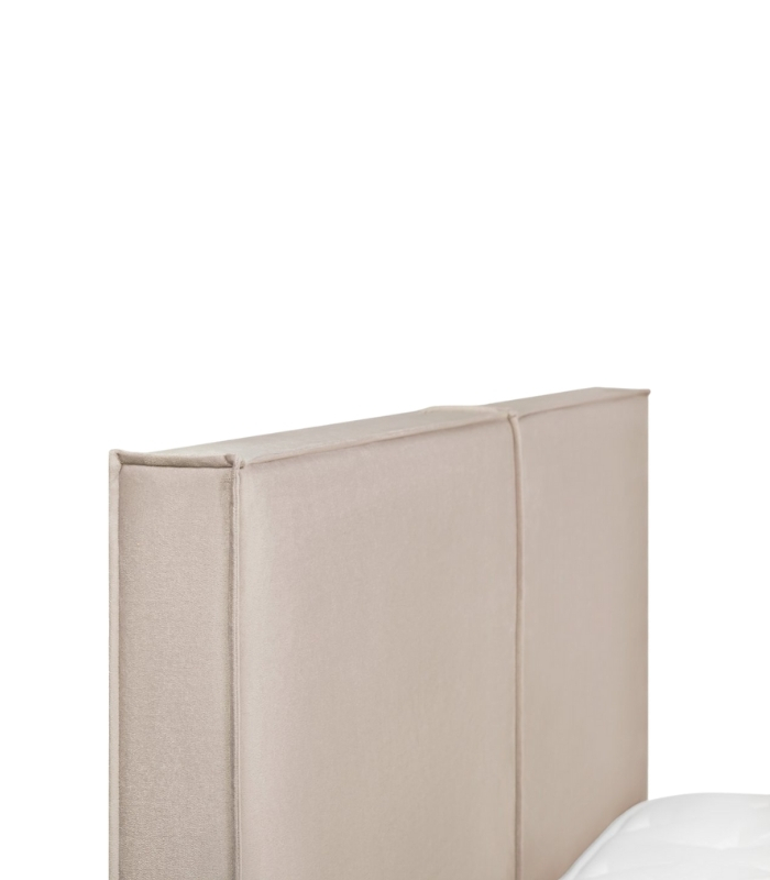 Bề mặt nhung cao cấp được xử lý mịn đều, tạo độ phản sáng nhẹ giúp chiếc giường luôn trông sang trọng ở mọi góc nhìn. Đầu giường vuông vắn, bọc nệm dày, đem lại cảm giác êm ái khi tựa lưng.