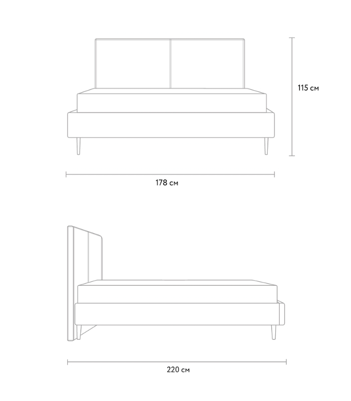 Giường có kích thước 178x220x115cm, sử dụng cho nệm 1m6x2m, phù hợp cho phòng ngủ chính hoặc phòng vợ chồng. Tỉ lệ giường được tính toán hợp lý để vừa đảm bảo sự thoải mái khi nghỉ ngơi, vừa giúp không gian gọn gàng, thoáng đãng.