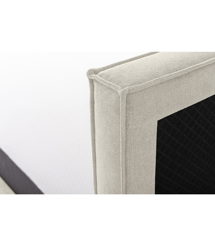 Đầu giường được thiết kế cao, bọc nhung mịn và chia đôi nhẹ nhàng, tạo nên cảm giác cân đối và vững chãi. Từng đường may tinh xảo tôn lên vẻ sang trọng, đồng thời giúp người dùng có điểm tựa êm ái khi đọc sách hoặc thư giãn.