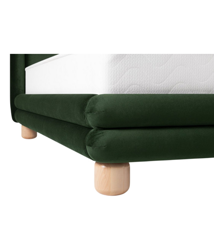 Lớp bọc nhung cao cấp mang đến cảm giác mềm mại và sang trọng khi chạm tay vào. Bề mặt nhung thể hiện tốt chiều sâu màu, đặc biệt nổi bật dưới ánh sáng tự nhiên. Tông Forest mang sắc xanh rừng đậm, tạo cảm giác yên tĩnh và thư giãn cho không gian ngủ. Màu xanh này còn mang lại vẻ bí ẩn, đủ cá tính nhưng vẫn giữ được sự tinh tế.