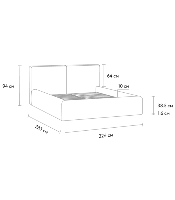 Trên nền kích thước 233 x 206 x 94 cm, chiếc giường giúp không gian trở nên thanh lịch và cân bằng.