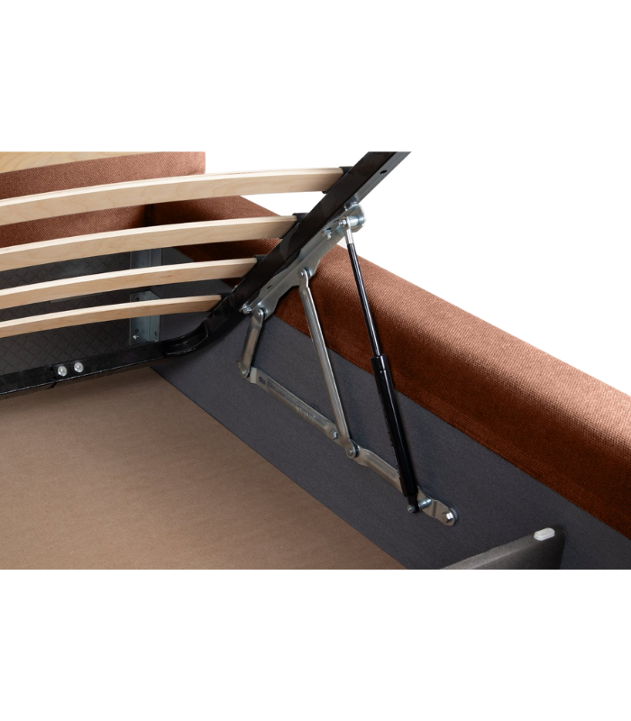 Bên dưới là khoang chứa đồ mở bằng cơ chế nâng hạ thông minh, cho phép sắp xếp chăn, gối hoặc vật dụng theo mùa một cách gọn gàng. Hệ thống nâng hoạt động êm, dễ thao tác và rất bền.