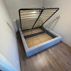 Giường trang bị cơ chế nâng hạ thông minh, cho phép mở khoang chứa đồ lớn bên dưới một cách nhẹ nhàng. Khoang chứa rộng rãi giúp tối ưu diện tích, thích hợp lưu trữ chăn ga, đồ theo mùa hoặc vali. Hệ thống nâng vận hành ổn định, ít tiếng ồn và bền bỉ qua thời gian. Khung giường được thiết kế chắc chắn nhằm tạo sự an tâm khi nghỉ ngơi mỗi ngày. Bề mặt đặt nệm phẳng, tương thích với nhiều loại nệm khác nhau.