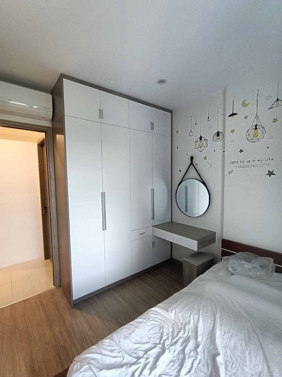 Form giường cân đối, nhìn phòng gọn gàng hơn hẳn.