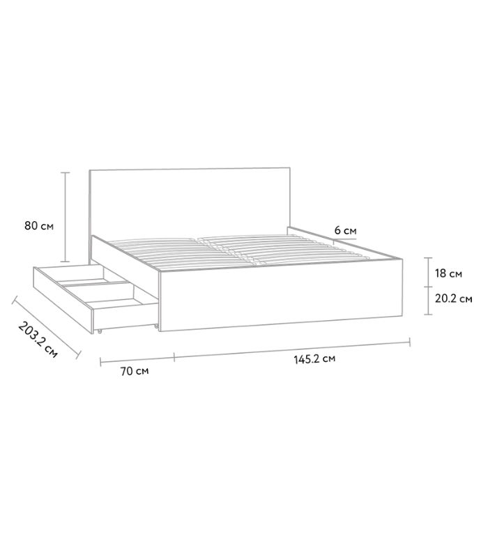 Với kích thước 145×203×80cm, giường không chiếm nhiều diện tích nhưng vẫn đảm bảo sự thoải mái khi nghỉ ngơi. Khung giường chắc chắn, nan giường chịu lực tốt giúp giấc ngủ trọn vẹn hơn.