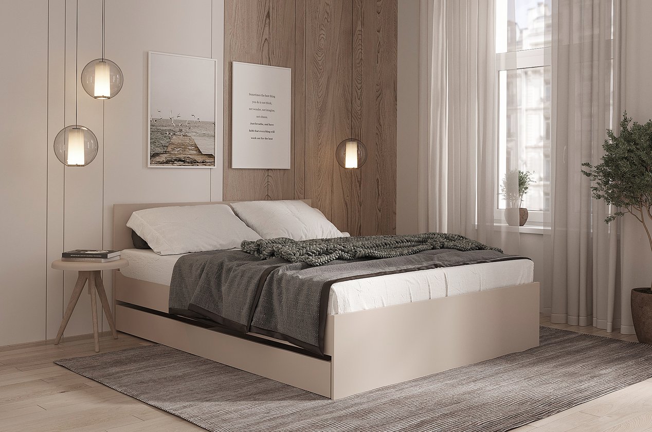 Giường Frombork 140-2 Cà Phê Sữa Latte sở hữu màu gỗ nâu sữa dịu nhẹ, tạo cảm giác ấm cúng nhưng vẫn trẻ trung. Đây là lựa chọn tuyệt vời cho phòng ngủ phong cách hiện đại hoặc vintage nhẹ nhàng.