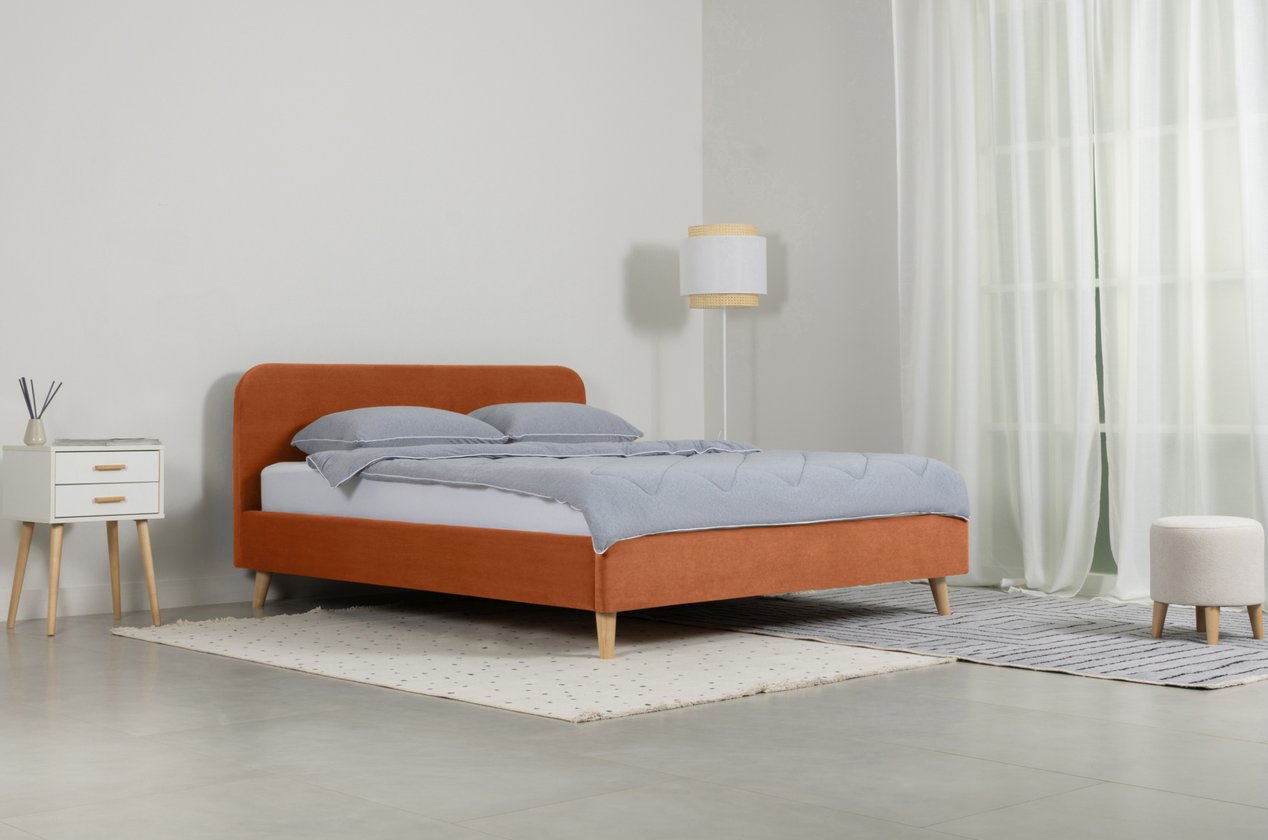 Giường Lightsy Nhung 180 màu Danel Ginger mang sắc cam nâu trầm ấm, tạo điểm nhấn độc đáo đầy phong cách cho phòng ngủ. Tone màu gợi cảm giác gần gũi, sang trọng và cực kỳ hợp với phong cách hiện đại – Scandinavian – boho ấm áp. Bề mặt nhung/vải mềm mại giúp tổng thể trở nên ấm cúng và thư giãn.