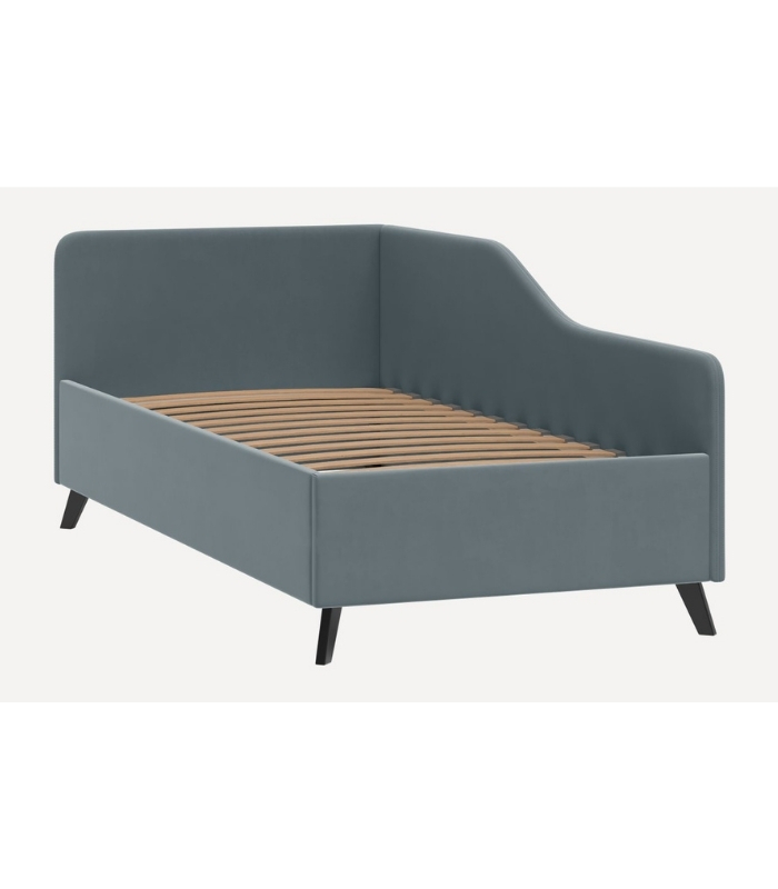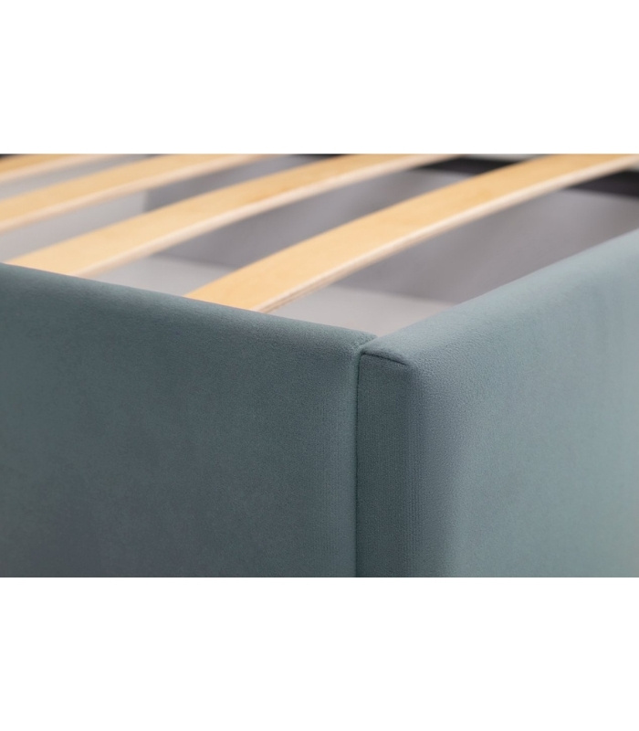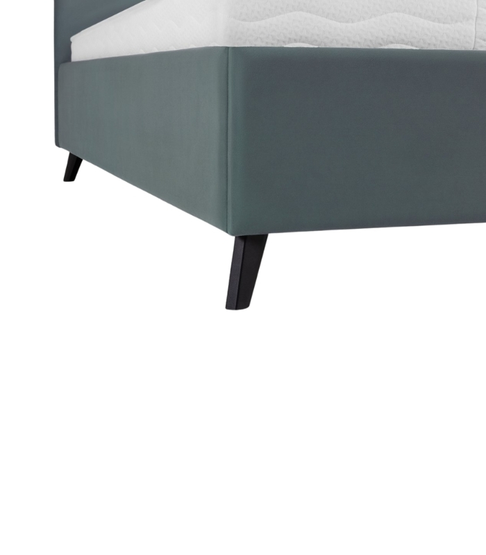 Thiết kế nhung Grafit dày và mịn mang lại vẻ cao cấp khi nhìn trực tiếp. Phần đầu giường cong uyển chuyển giúp tổng thể hài hòa hơn, giảm sự thô cứng thường thấy ở các mẫu giường khối vuông.