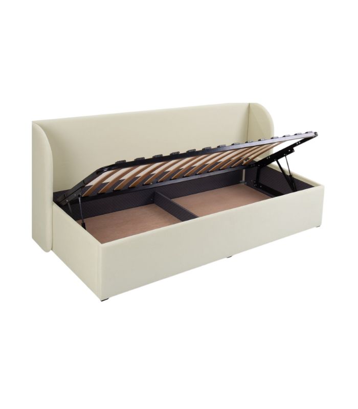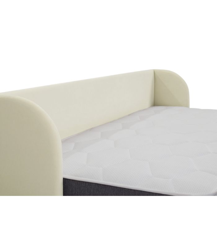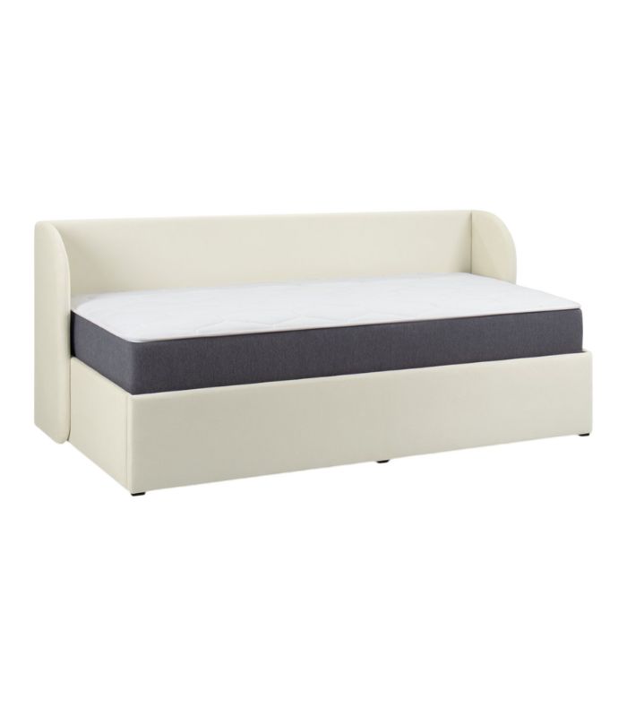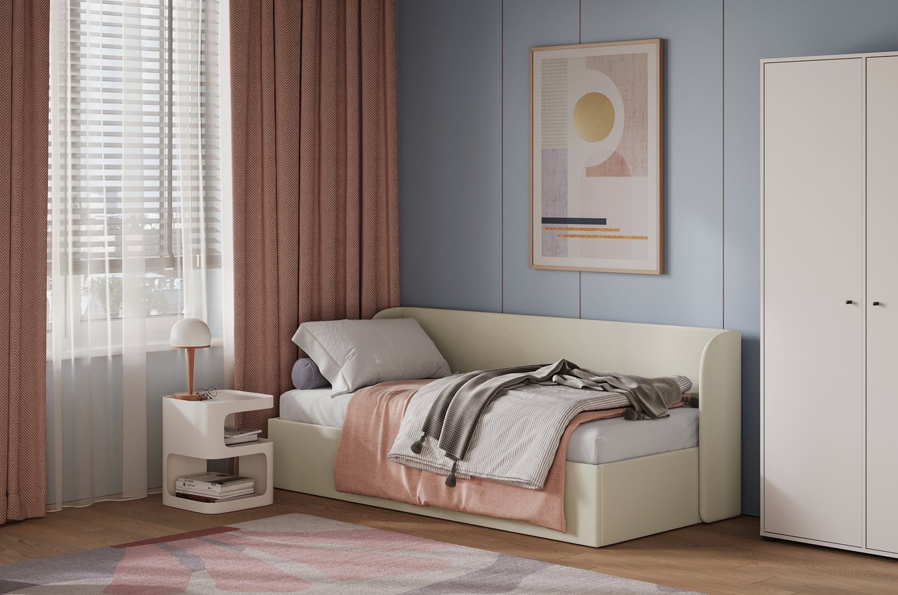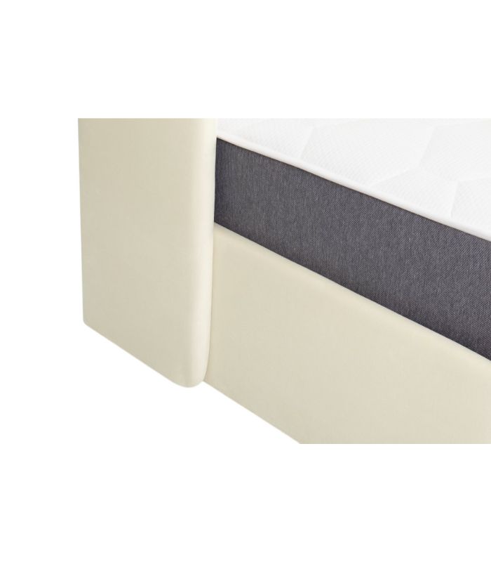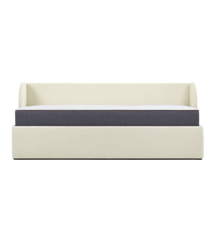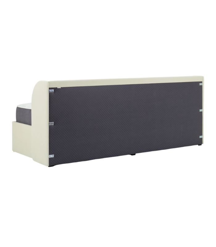 Tựa đầu thiết kế bo tròn, vừa vặn độ nghiêng giúp ngồi tựa lưng lâu mà không bị mỏi. Một chiếc giường màu sữa ấm áp, êm ái – hoàn hảo để tạo nên không gian nghỉ ngơi thư giãn và tinh tế.