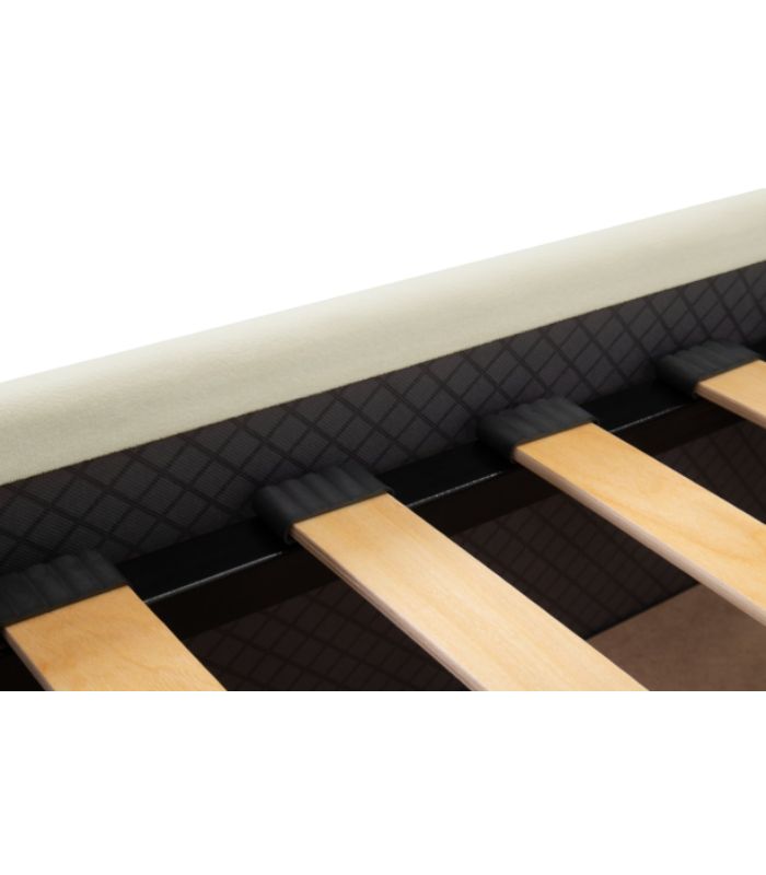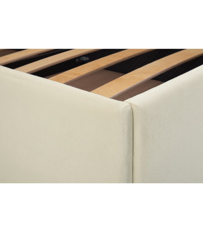 Giường được hoàn thiện bằng lớp nhung/vải mềm, mịn, độ bền cao, giữ màu lâu và tạo cảm giác sang trọng. Chất liệu nhung khi lên màu Milk đặc biệt đẹp, không bị bệt màu, ánh nhung nhẹ tạo chiều sâu tinh tế.